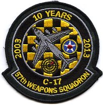 57th Weapons Squadron, 10 Years C-17 McGuire AFB, NJ |
